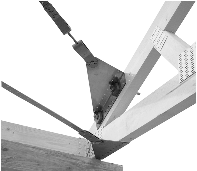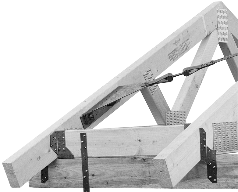 Blacha węzłowa BNG jest częścią systemu stężenia wiatrowego Simpson Strong-Tie wzmacniającego skrajne połączenie węzła w połaci dachowej.