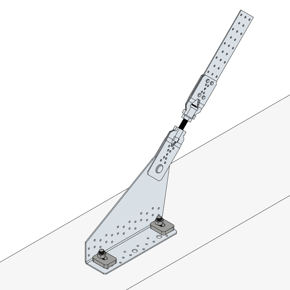 - Blacha węzłowa mocowana jest w skrajnych elementach okapowych i kalenicowych tworząc punkty wyjścia do stężenia połaci dachowej. Może być mocowana do elementu drewnianego lub do betonu.