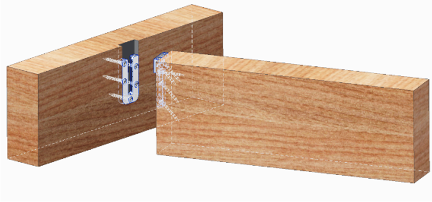 - Do połączenia elementów z drewna litego, kompozytowego lub klejone warstwowo, z elementem głównym o podobnych właściwościach w połączeniach belka-belka, belka-słup.