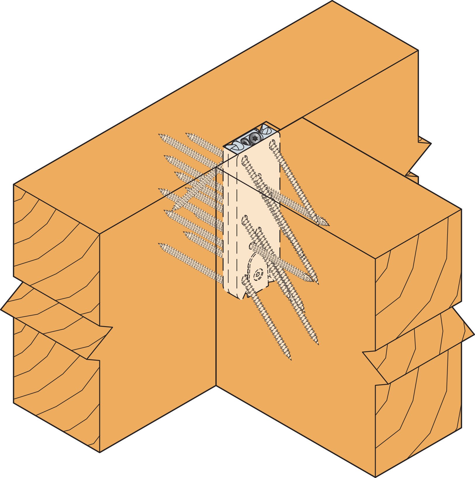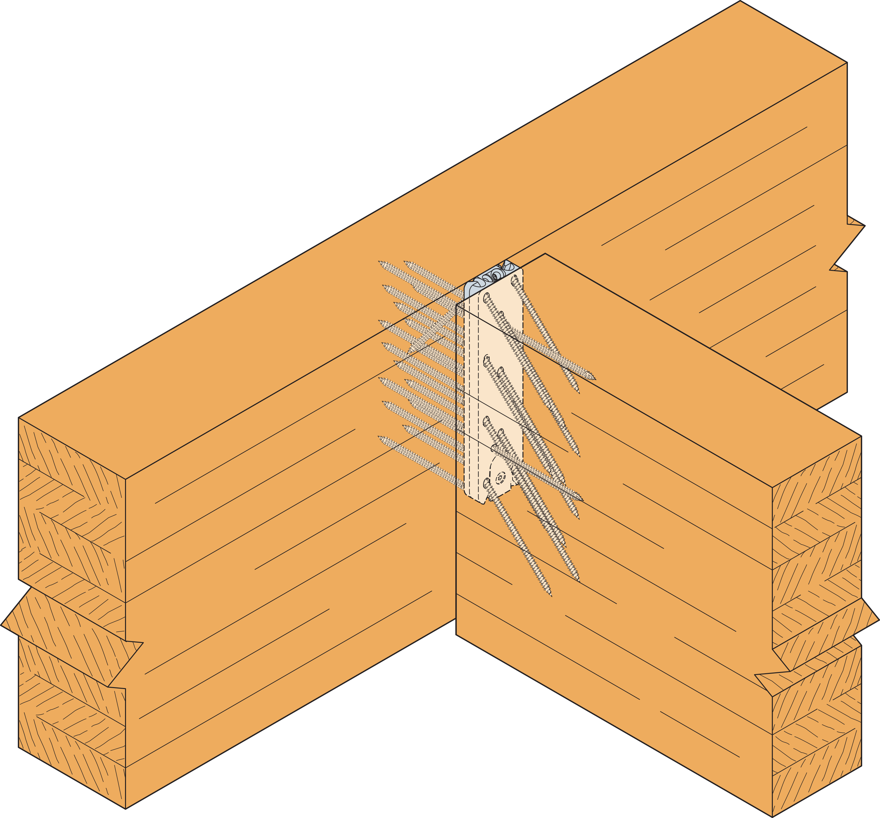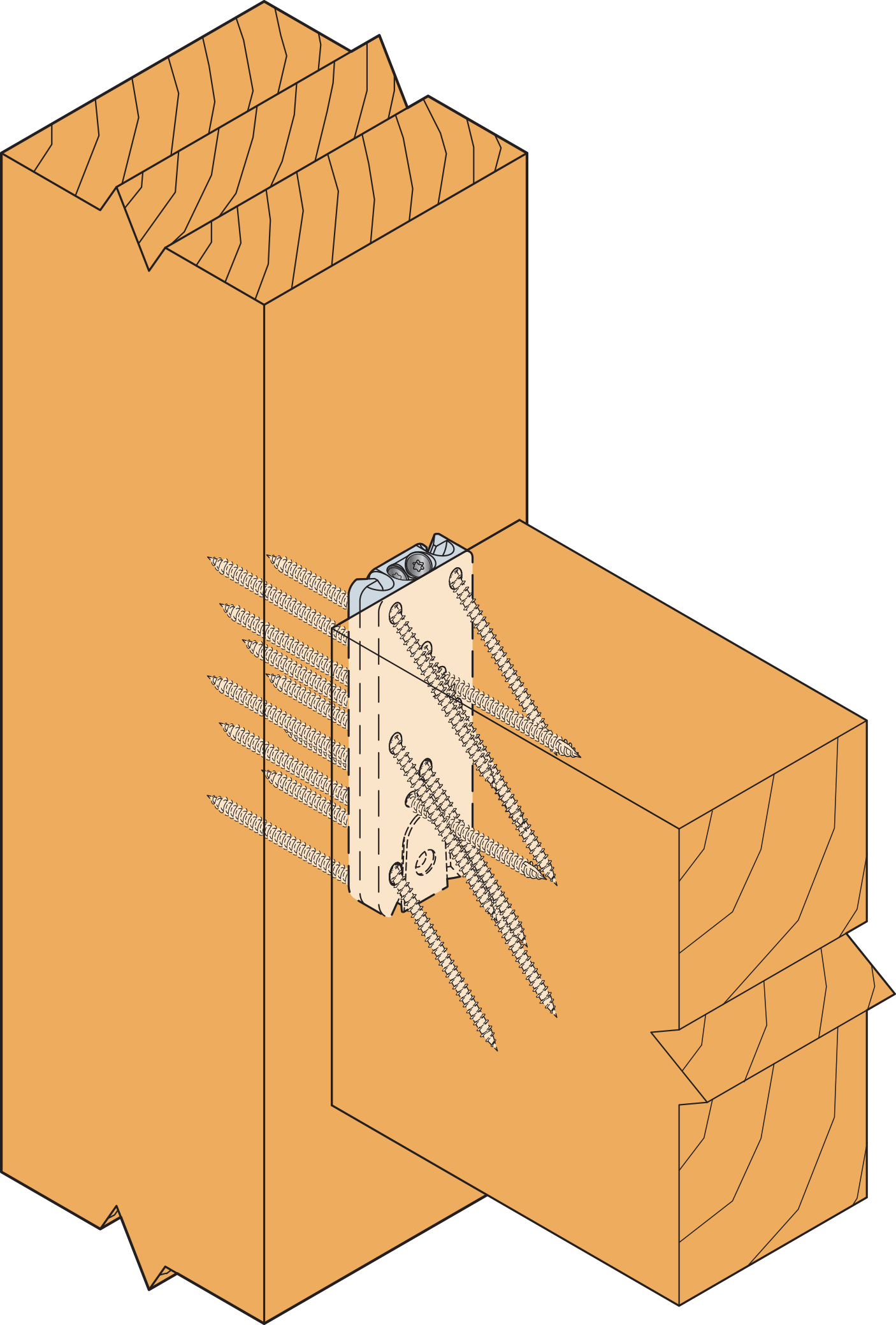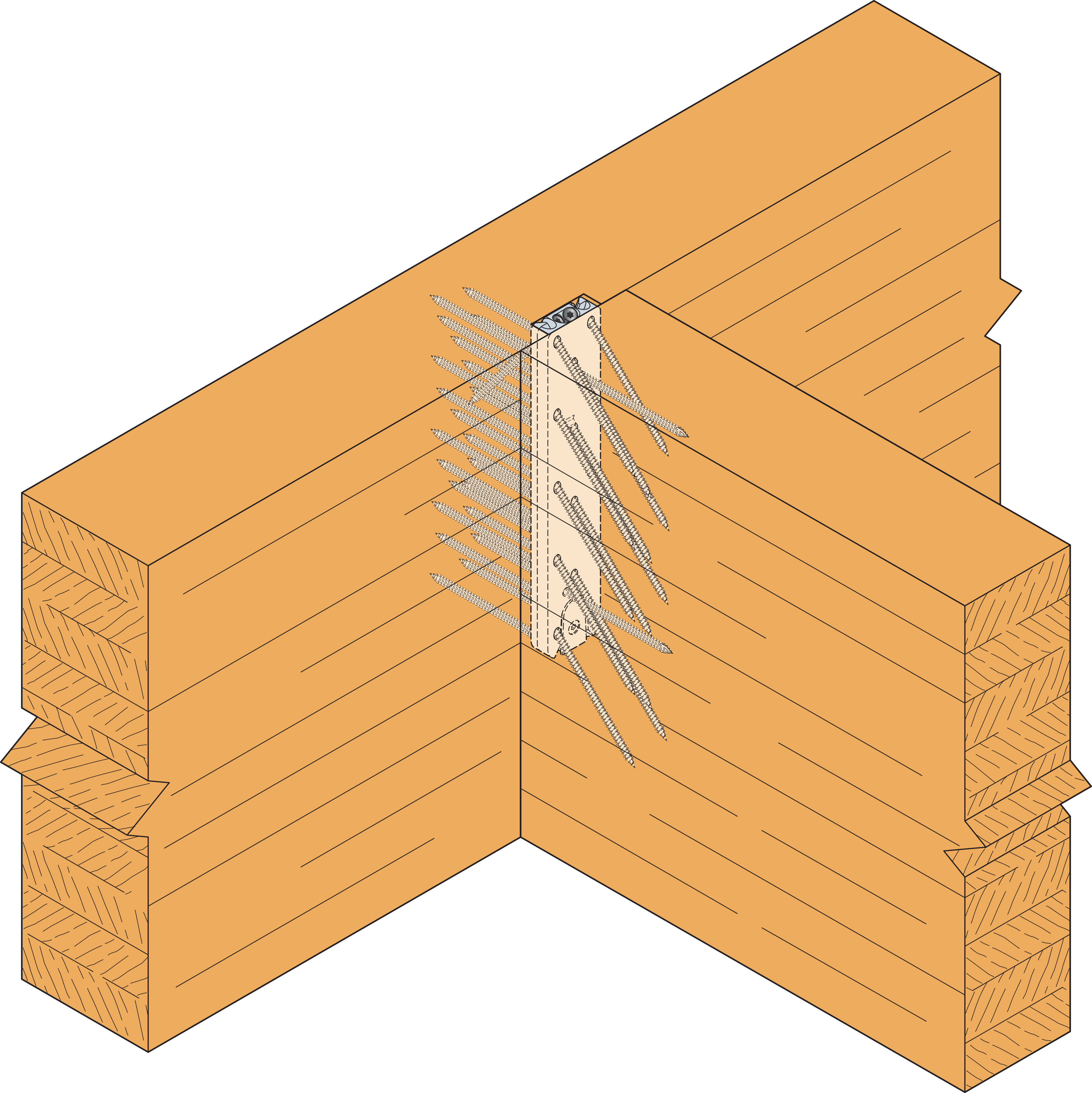 Wkręty montowane od góry, przechodzące z belki stropowej do belki poprzecznej (header), i muszą zostać zainstalowane w celu przeciwdziałania siłom