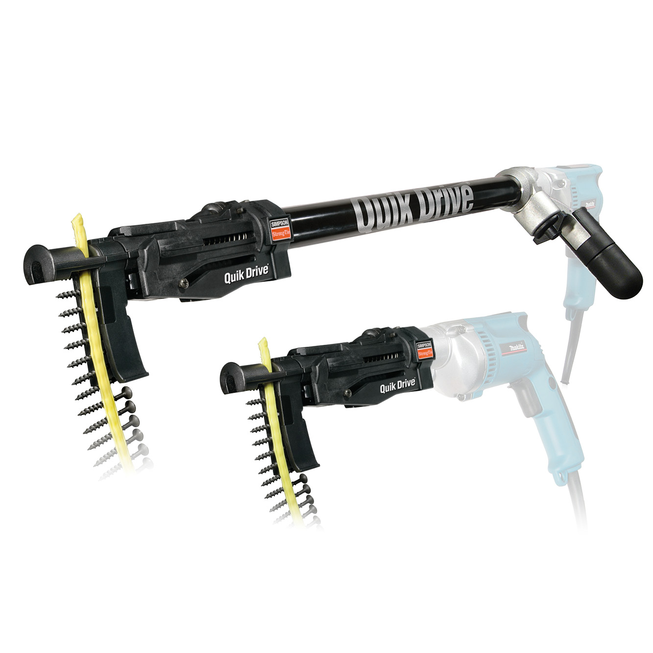 Quik Drive® QDPRO51E jest najbardziej zaawansowanym systemem automatycznego wkręcania wkrętów. Znacznie skraca czas pracy potrzebny na zamocowanie elementów. System jest kompatybilny ze wszystkimi wiodącymi urządzeniami (wkrętarkami) i oferuje bogatą paletę asortymentową wkrętów oraz profesjonalne końcówki.