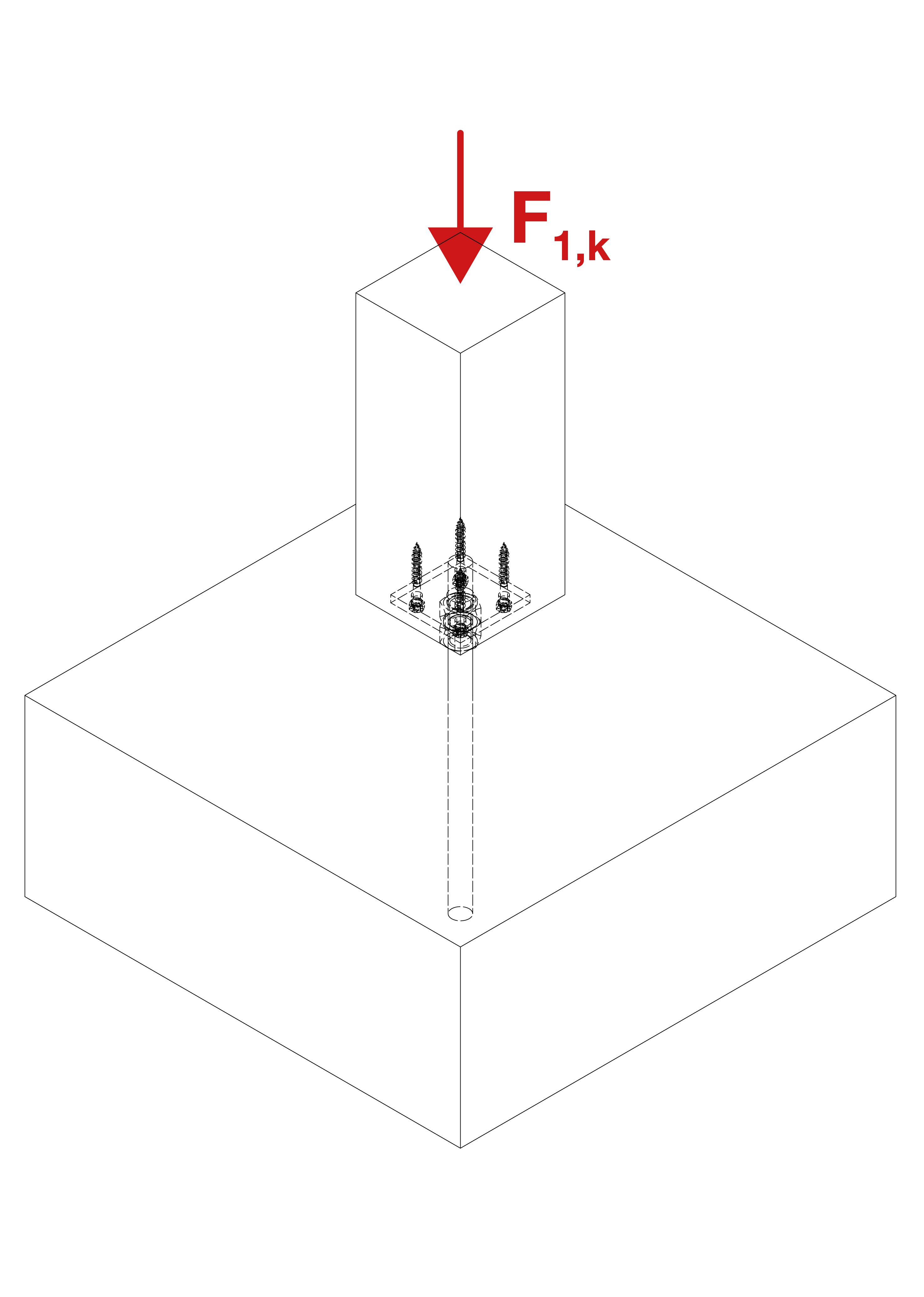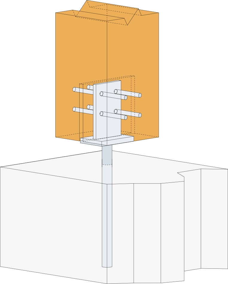 - Wsuń belkę na podstawę słupa i wbij wszystkie sworznie STD Ø8 w otwory.