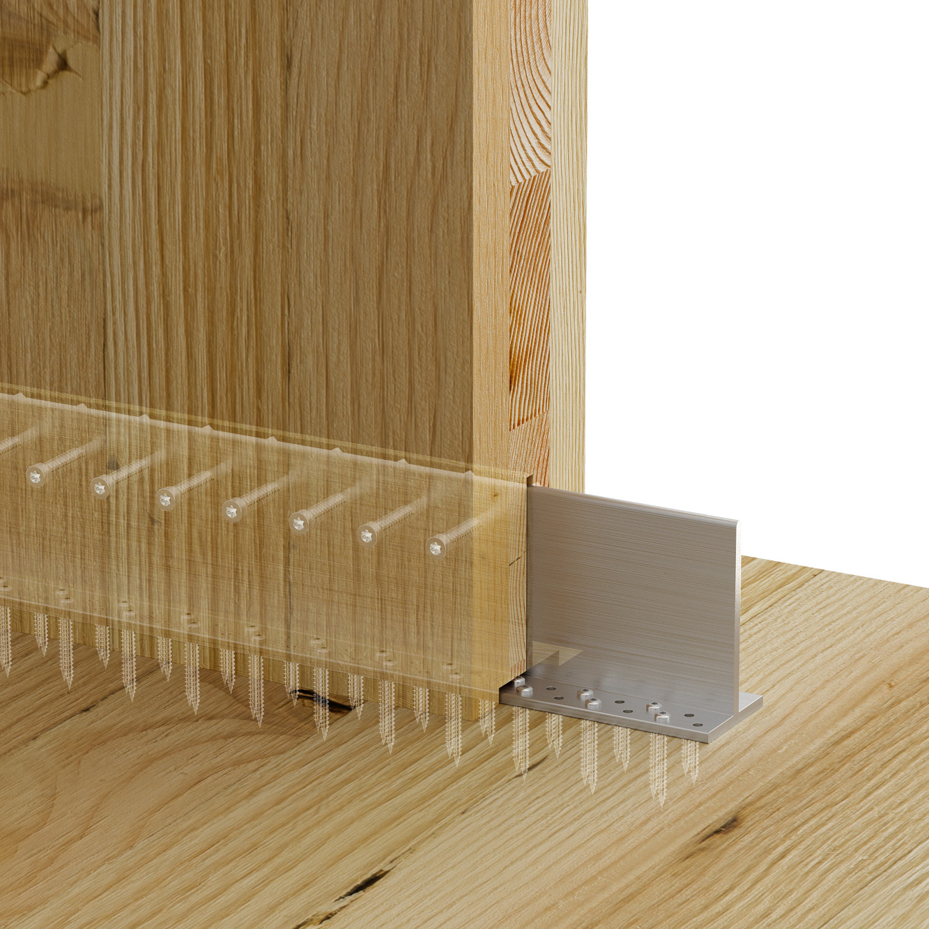 Samowiercący sworzeń SDD z oznaczeniem CE oferuje wydajną metodę mocowania drewna klejonego i CLT w połączeniu z złączami wykonanymi z aluminium.