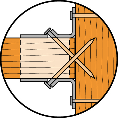 Zastosowanie gwoździ CNA (lub wkrętów CSA) jest warunkiem koniecznym dla uzyskania pełnej nośności połączenie z użyciem złączy ciesielskich Simpson Strong-Tie