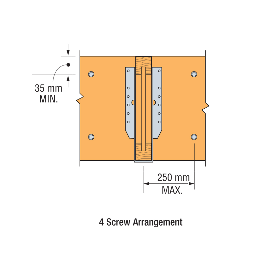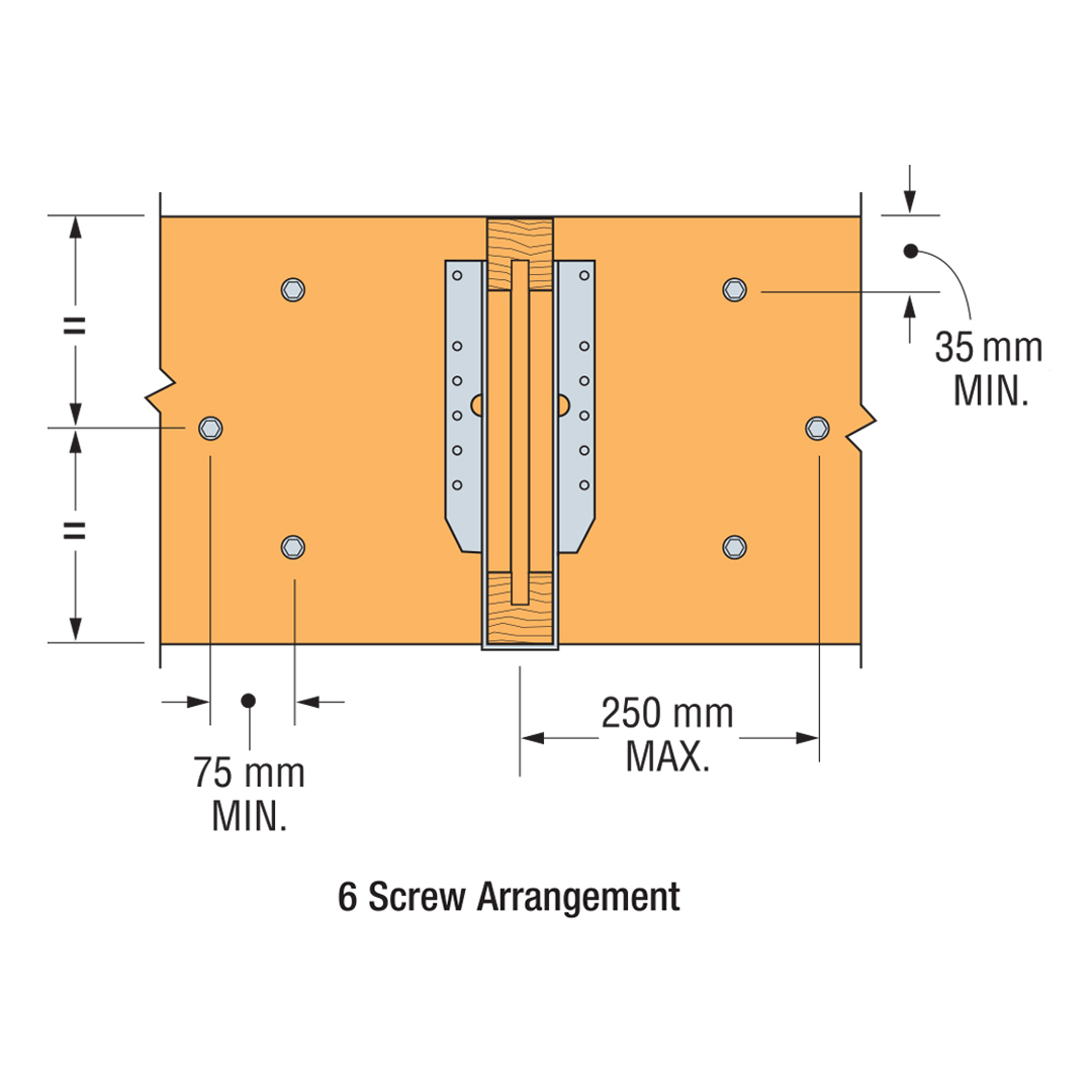 Rozstaw poszczególnych wkrętów oraz ich lokalizacje można regulować do 75 mm, aby uniknąć konfliktów z innym elementem lub rozwarstwieniem drewna.