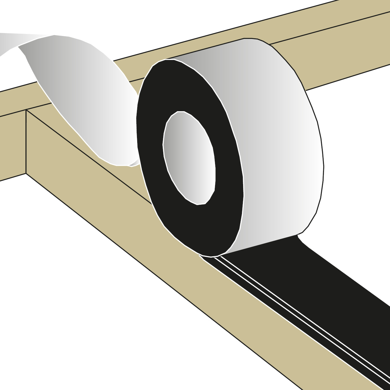 Taśmę nakłada się na górną część drewnianej ramy przed ułożeniem i zamocowaniem desek tarasowych. Przed nałożeniem taśmy na drewno usuwa się papierową podkładkę, która chroni klej na taśmie. Taśma jest następnie wygładzana płaskim przedmiotem lub rękami (zalecane rękawiczki).