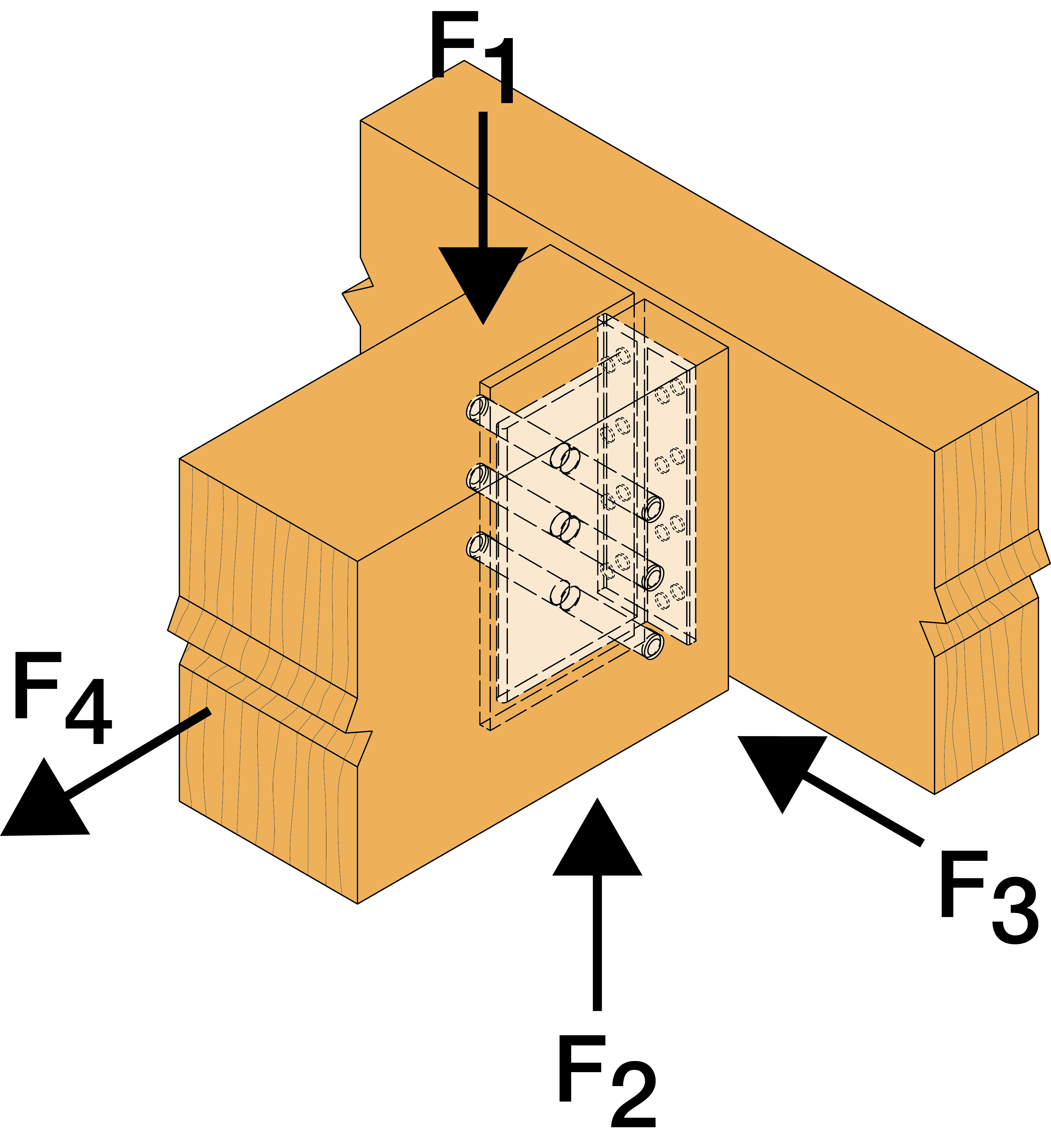 - Do połączenia elementów z drewna litego, kompozytowego lub klejone warstwowo, z elementem głównym o podobnych właściwościach w połączeniach belka-belka, belka-słup.