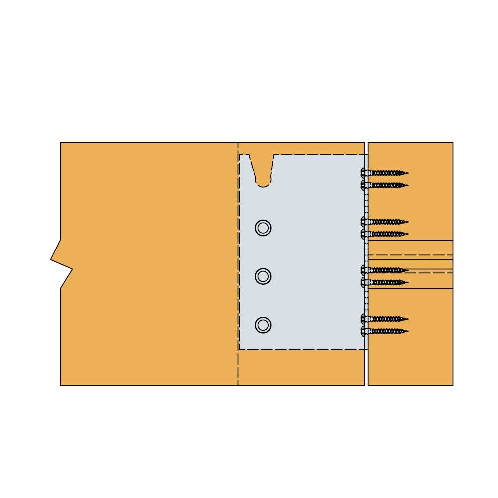 - Do połączenia elementów z drewna litego, kompozytowego lub klejone warstwowo, z elementem głównym o podobnych właściwościach w połączeniach belka-belka, belka-słup.