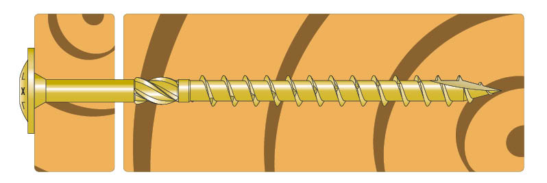 - Gwint tnący przecina powstałe w wyniku bezpośredniego wkręcania wióry zapobiegając rozszczepianiu się drewna.