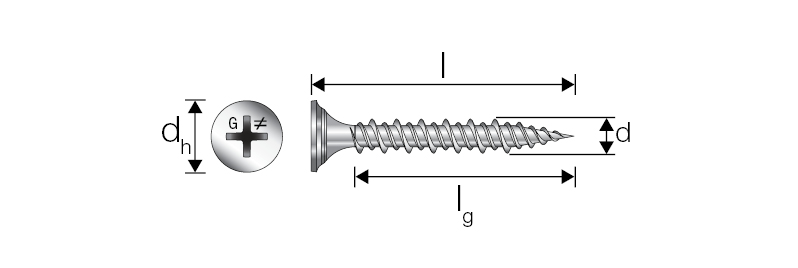 Uniwersalne wkręty do suchej zabudowy z podwójnym gwintem. Używany do łączenia płyty gipsowo-kartonowej z listwą drewnianą lub cienkościennym profilem stalowy ≠ 1,0mm wewnątrz budynków.