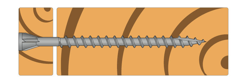 Wkręty stożkowe DTHQ na taśmie do połączenia desek tarsowych z legarem. Zapewniają uzyskania wysokiej wydajności i szybką pracy. Specjalny ostry gwint zapewnia szybkie i pewne wkręcanie. Umieszczone żebra tnące w dolnej części stożka ułatwiają właściwe zagłębienie wkręta.