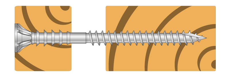 Wkręty dystansowe do elementów drewnianych, listew lub do wewnętrznej drewnianej zabudowy w pomieszczeniach pod płytę GK lub OSB. Wkręty mają dwie odmienne strefy profilowania trzpienia. Pierwszy z nich to klasyczny ostry gwint do drewna z ostrym szpicem, drugi to specjalne pierścienie, które przytrzymują mocowany element, dzięki czemu możemy regulować różnice w odległościach pomiędzy elementami.