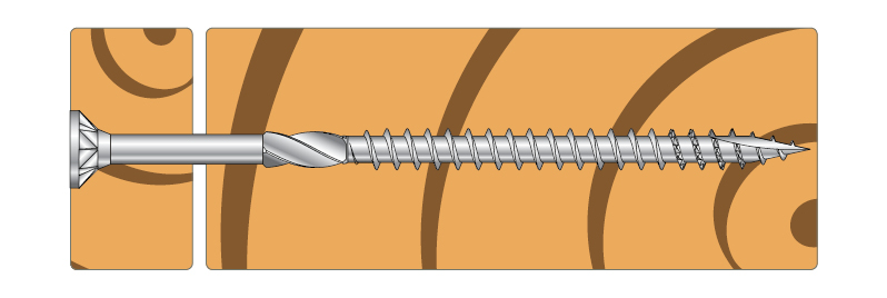Wkręty stożkowe do łączenia elementów w konstrukcjach drewnianych. Specjalny ostry i nacięty profil gwintu redukuje moment montażowy a dodatkowe nacięcie wzdłuż wkręta eliminuje rozwarstwianie się drewna. Żebra frezujące w dolnej części stożka ułatwiają właściwe zagłębienie wkręta.