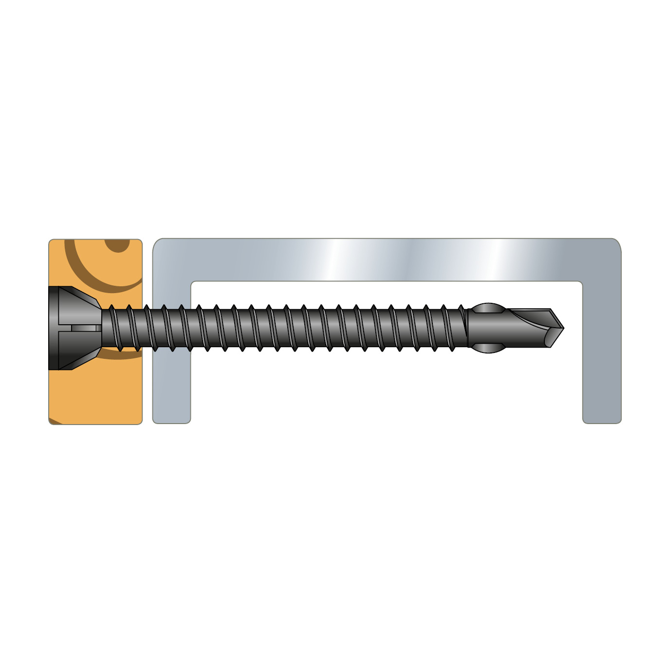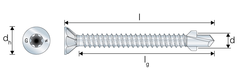 Samowiercące stożkowe wkręty przeznaczone do szybkiego montażu elementów drewnianych i drewnopochodnych do elementu stalowego. Zapewniają uzyskania wysokiej wydajności i szybką pracy. Specjalna motylkowa samowiercąca końcówka wkręta zapewnia szybkie i pewne wkręcanie bez wstępnego nawiercania. Umieszczone żebra tnące w dolnej części stożkowe główki ułatwiają właściwe zagłębienie wkręta w elemencie drewnianym.