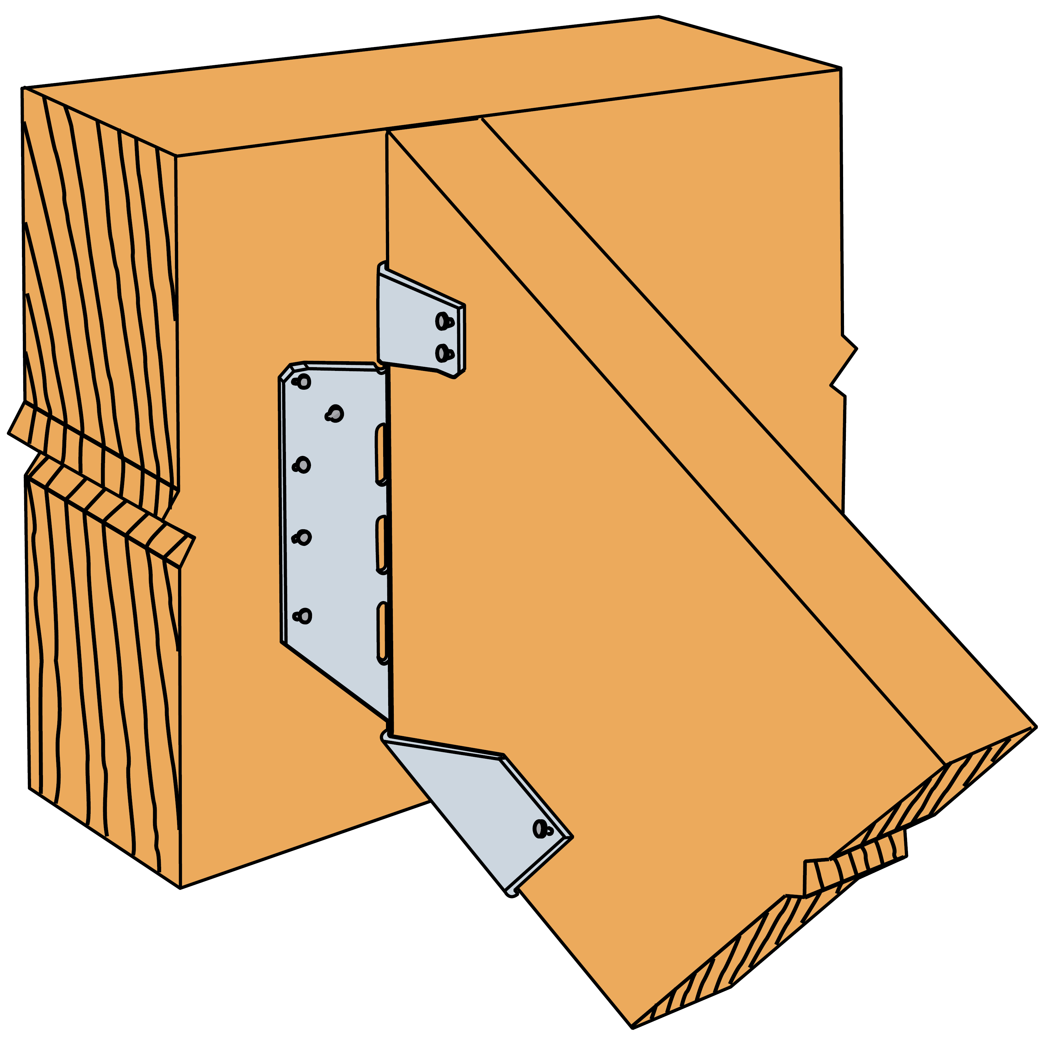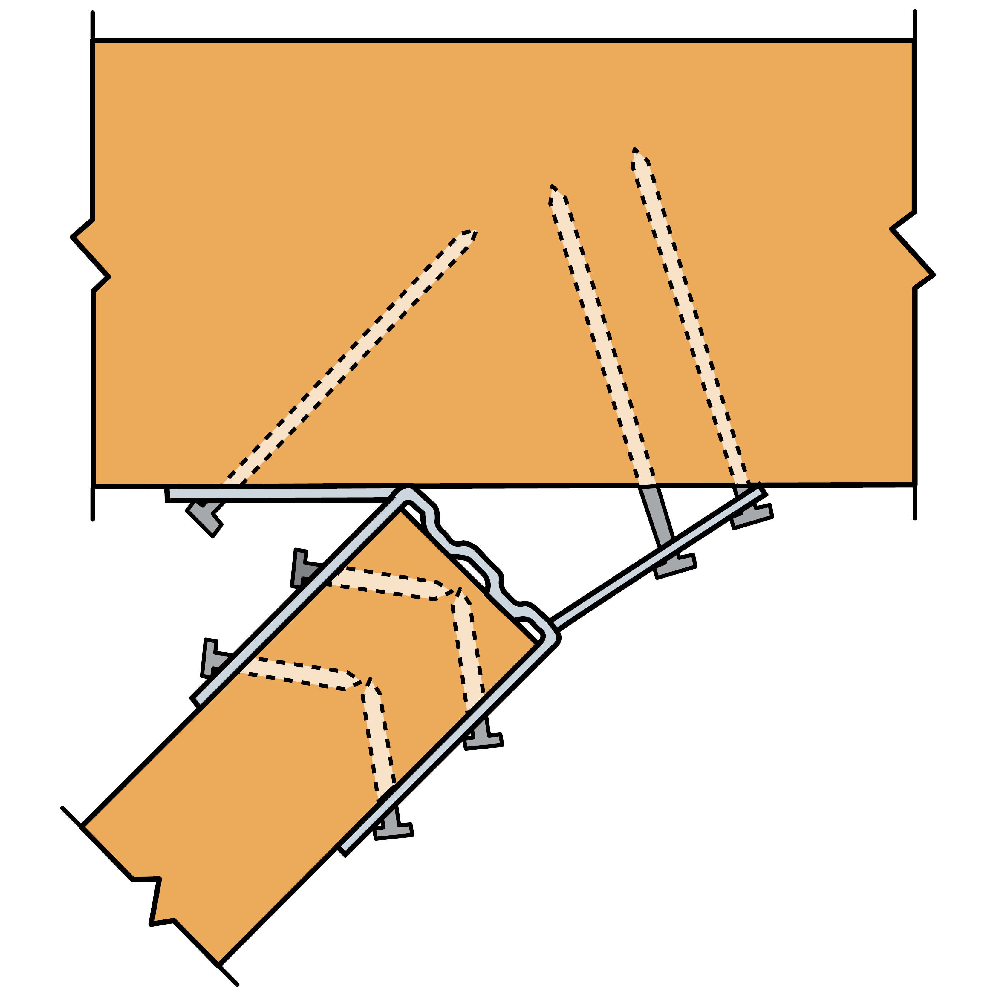 Złącze LSSUI / LSSU służy do połączenia krokwi z kalenicą. Dzięki możliwości dostosowania kąta w płaszczyźnie poziomej nadaje się idealnie do połączenia krokwi z belką narożną w dachach kopertowych.