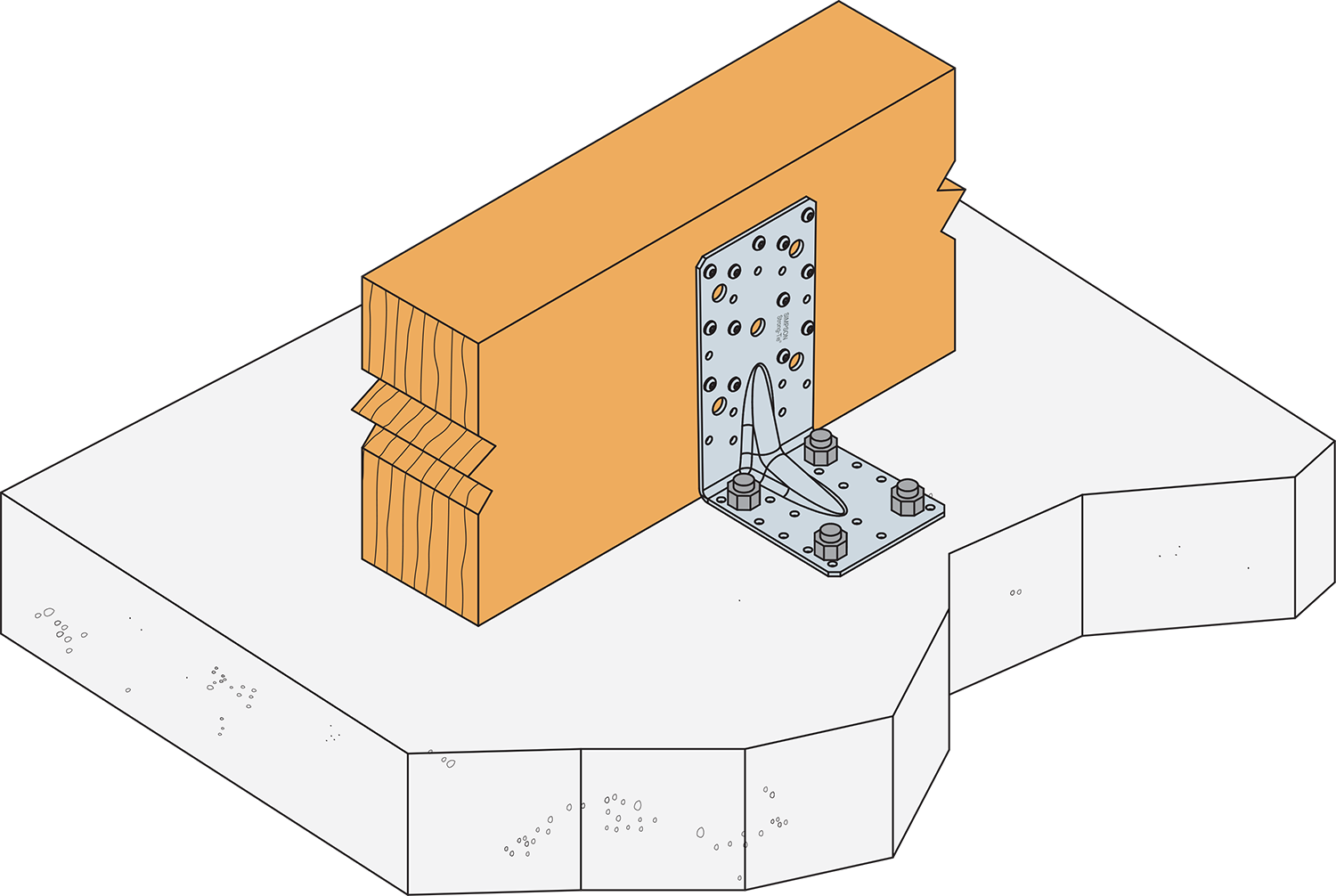 Łącząc element drewniany z betonowym, należy zastosować kotwy mechaniczne lub chemiczne Simpson Strong-Tie z wykorzystaniem prętów gwintowanych LMAS.