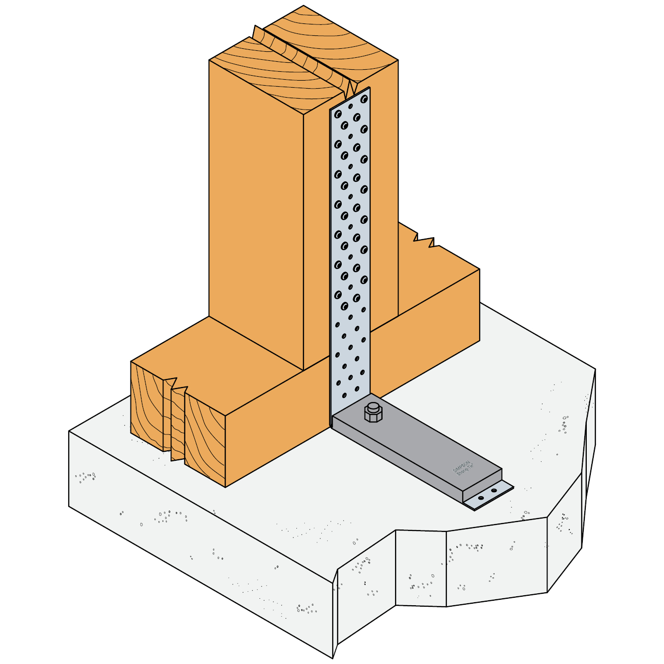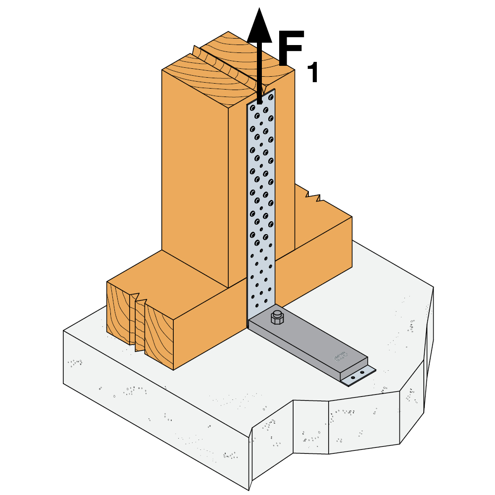 Złącza kotwiące HD z blachy ogrubości 2 mm i długich ramionach w połączeniu z grubą podkładką w dolnym ramieniu tworzy zintegrowane połączenie pozwalające na równomierny rozkład sił kotwiących i redukuje niezbędną siłę którą musi przenieść kotwa.